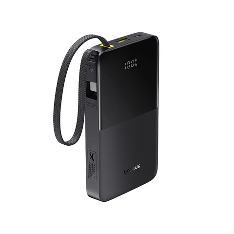Jedną z największych zalet nowego modelu jest wbudowany, pleciony kabel USB-C o długości 22 cm – elastyczny, odporny na przetarcia, zginanie i skręcanie. Przeszedł testy wytrzymałościowe w laboratoriach Baseus, gdzie ponad 10 000 razy był zwijany i rozwijany – bez utraty funkcjonalności.