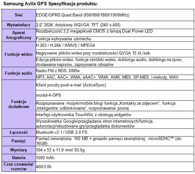 Po sukcesie rynkowym telefonu Samsung Avila, który na całym świecie zyskał ponad 10 milionów użytkowników zaledwie w 6 miesięcy od momentu rozpoczęcia sprzedaży, nadszedł czas na nową i jeszcze bardziej funkcjonalną wersję tego modelu. Właśnie na rynek wchodzi Samsung Avila GPS, która oferuje jeszcze więcej niż bestsellerowa poprzedniczka.