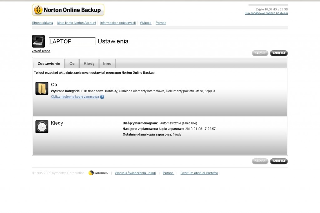 Nowe funkcje Norton Online Backup 2.0: