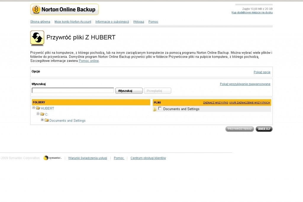 Nowy Norton Online Backup umożliwia współdzielenie i przenoszenie dokumentów, zdjęć, muzyki i innych plików pomiędzy komputerami. Przywrócenie kopii zapasowej wymaga jedynie podłączenia do Internetu i jest możliwe z każdego miejsca, w dowolnie wybranym czasie. Usługa Norton Online Backup jest oferowana w polskiej wersji językowej.
