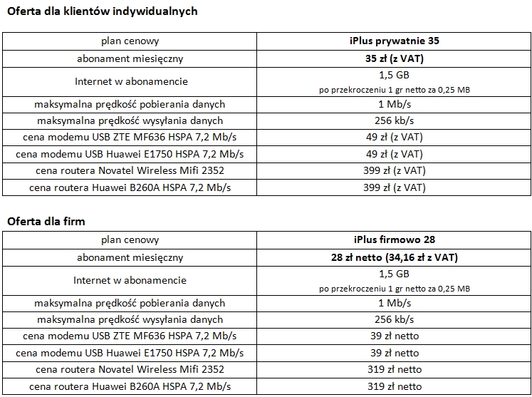 14 czerwca br. iPlus wprowadza nowy, tani abonament za 35 zł z VAT. Nowa oferta jest przeznaczona dla osób, które mało korzystają z Internetu lub wykorzystują iPlusa jako drugi dostęp do sieci, np. oprócz stacjonarnego.