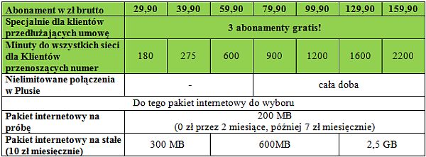Każdy klient, który przeniesie swój dotychczasowy numer i skorzysta z ofert Plus Abonament lub Plus dla Firm otrzyma rabat 100% na abonament przez pierwsze trzy miesiące umowy i zwiększony pakiet minut do wszystkich sieci.