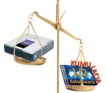 Przykładowo: wpłacając 20 zł na rozmowy, otrzymujemy kod rabatowy wysokości 10 zł. Przy kolejnej wpłacie 50 zł otrzymamy już kod o wartości 35 zł. Możemy więc w ciągu 6 miesięcy otrzymać bardzo korzystny rabat, w tym rabat wartości kupowanego sprzętu – wtedy kupimy go za jedyne 1 zł. Wszystko zależy od wysokości naszych wpłat.